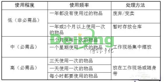2.確立每一項(xiàng)物品的用途、使用方法、應(yīng)用頻率,多方面歸類;